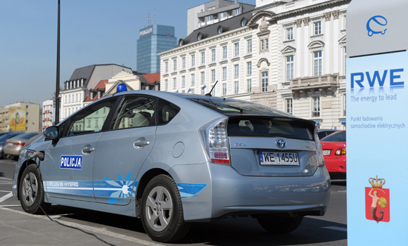 Hybrydowy Prius testowany przez warszawską policję 26-04-2011, foto: Toyota