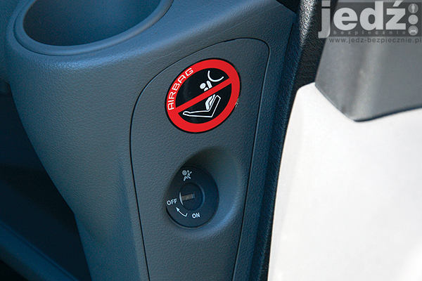Przewożenie dzieci dostawczym pojazdem to zazwyczaj trudny temat. Tego rodzaju robocze wehikuły często nie posiadają mocowań fotelików typu Isofix. NV200 nie wyróżnia się na plus i nie znajdziemy w nim tych mocowań na fotelu pasażera. Pozostaje więc przymocowywanie fotelika pasami bezpieczeństwa. Jeżeli dziecko podróżuje tyłem do kierunku jazdy, poduszkę pasażera (ale tylko w wersji Comfort) odłącza się za pomocą "stacyjki" z prawego boku kokpitu.