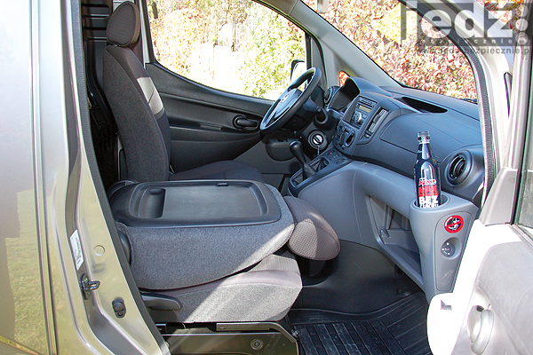 Dlaczego mają one być ładowni? Ano dlatego, że w szoferce dramatycznie brakuje zamykanych schowków. Owszem jest jeden mały, miedzy przednimi fotelami, ale to stanowczo za mało. Przed pasażerem straszy otwarta wnęka, "na rękawiczki" jak uściśla Nissan w specyfikacji wyposażenia. A kieszenie w drzwiach są wąziutkie.